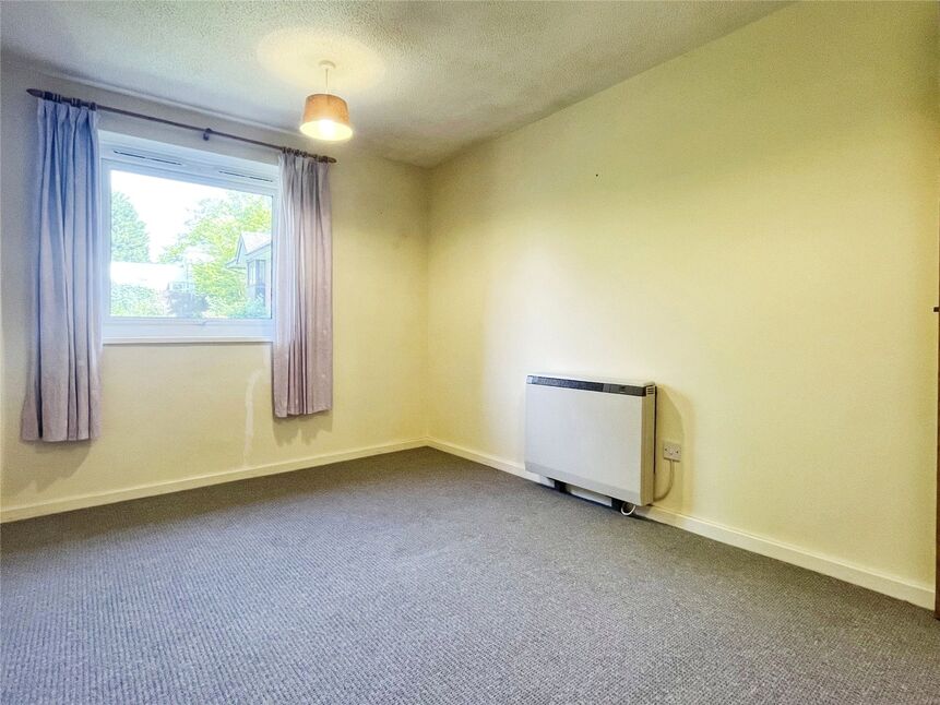 Double glazed box style bay window to rear overlooking communal gardens to the rear, storage heater and electric fireplace. Connecting access to