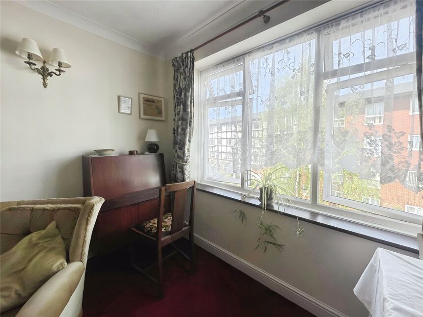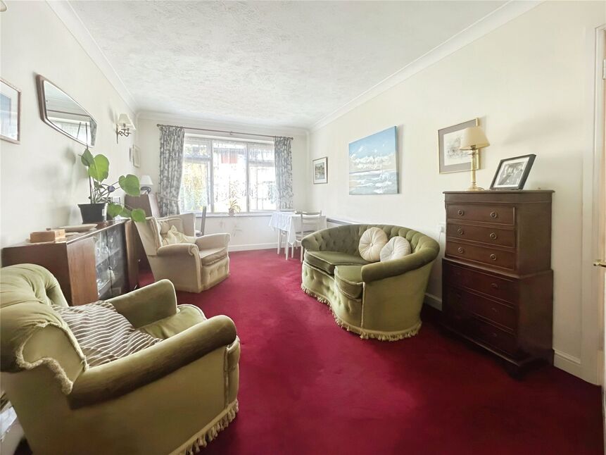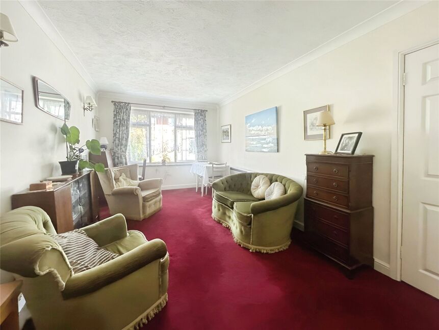 This great size living space benefits from carpeted floors, electric heating and large double glazed window overlooking the beautifully presented and well kept communal gardens,