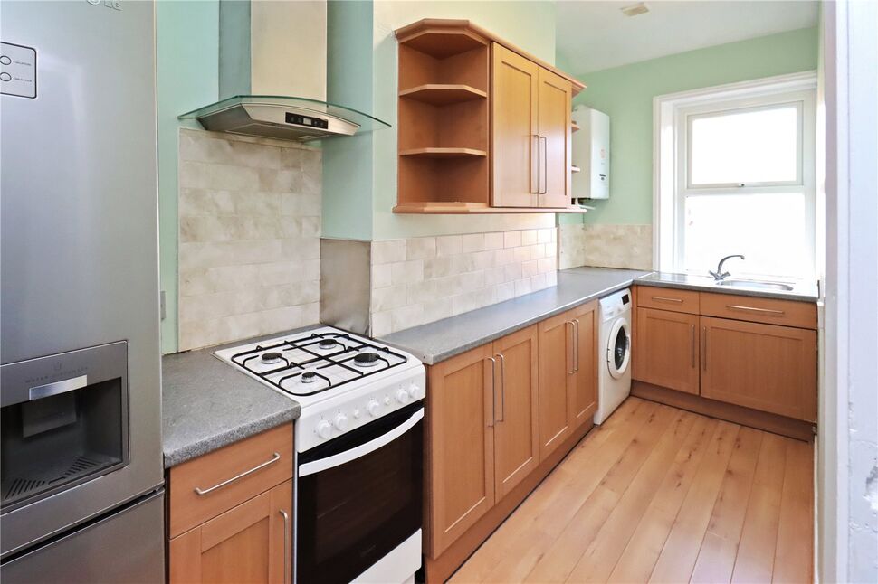 Fitted with a range of light wood wall and base units with roll top work surfaces, wall mounted boiler, single sink and drainer, gas cooker point, plumbed for washing machine, laminate flooring.