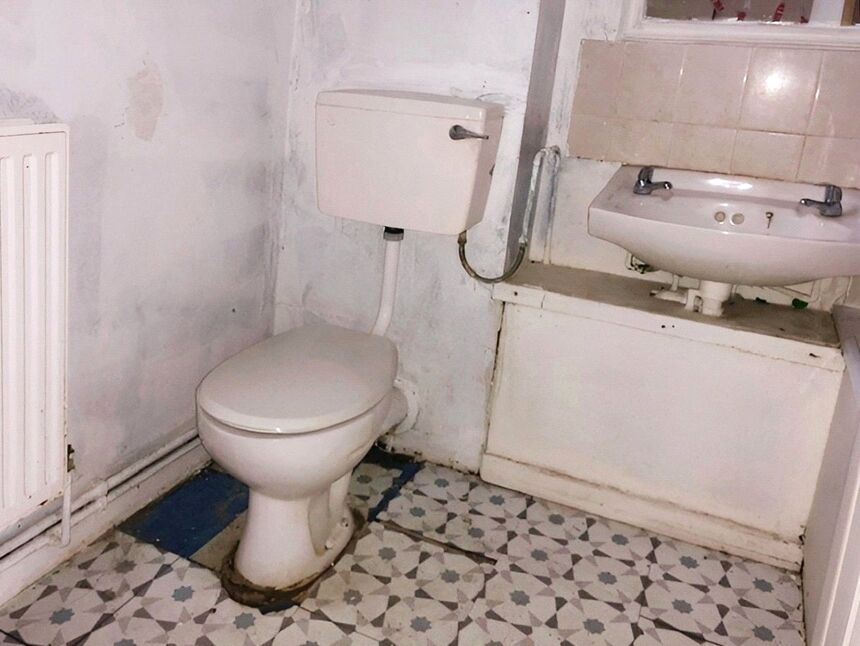 The flat comprises one double bedroom, offering a comfortable space for relaxation and rest. The bathroom requires renovation, allowing the new owner to design their own personal oasis. Similarly, the kitchen also needs improvement, providing an exciting opportunity to create a modern and functional culinary space to suit your taste.