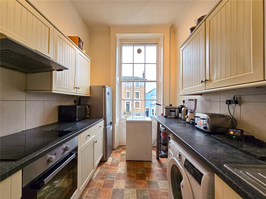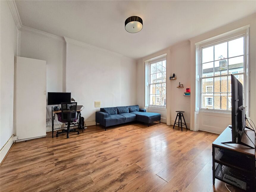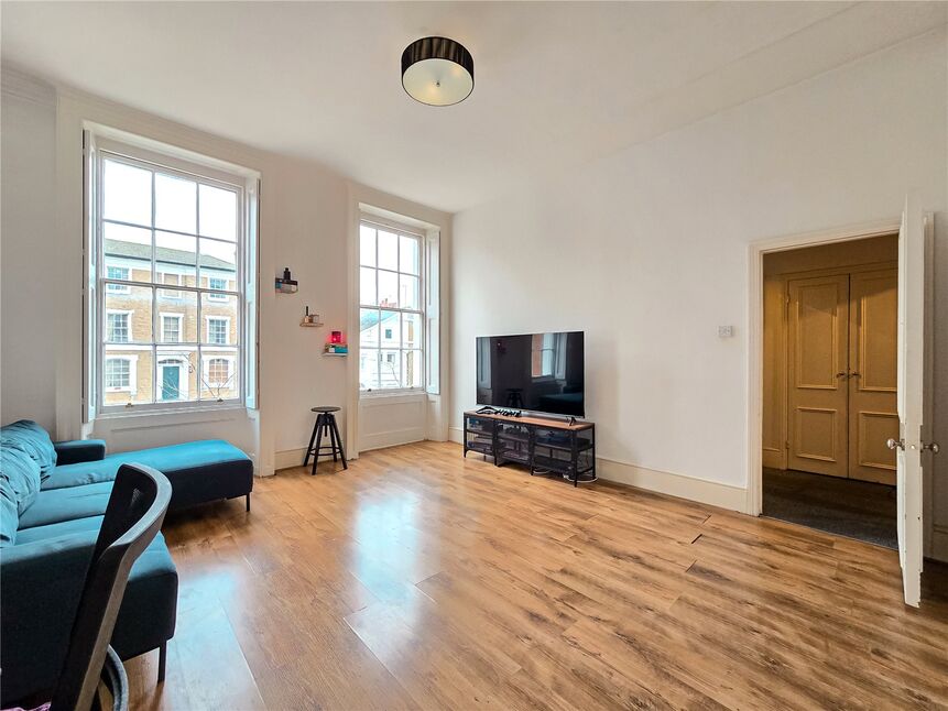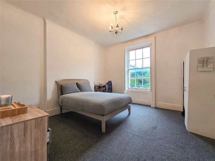 A beautiful Georgian building that offers an unparalleled living experience with the highest ceiling height currently available on the market. The flat is flooded with light through gorgeous windows that highlight the impressive scale and character of each room. With some of the largest room sizes ever seen in a one-bedroom property, the space could be both luxurious and versatile. There is exciting potential to transform this flat into a two-bedroom home or create an extraordinary open-plan layout that suits your needs. Complete with off-street parking and offered chain-free, this property is an incredible opportunity for those looking for a stylish, spacious, and adaptable space in a prime location.
