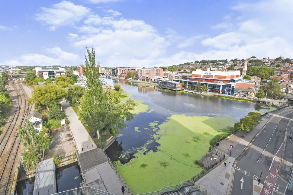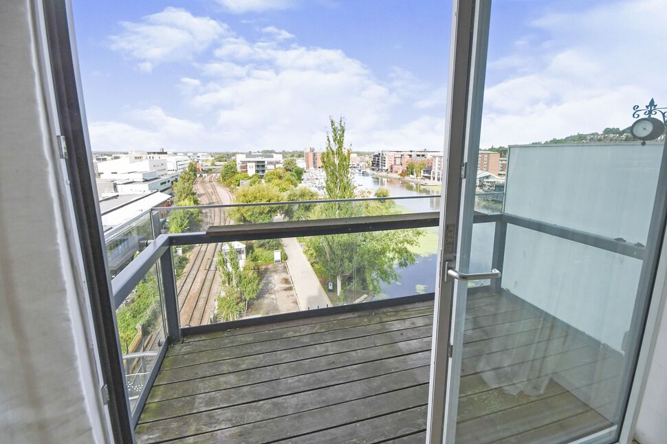 This apartment has TWO double bedrooms with an en suite main bedroom, and an extremely spacious living room-kitchen with double doors leading onto the balcony with views over the Brayford Marina.