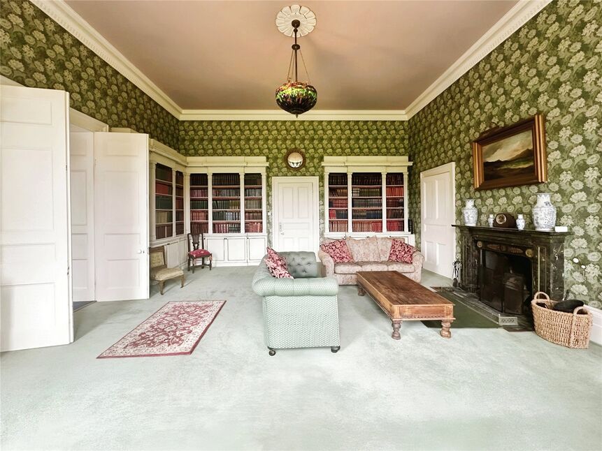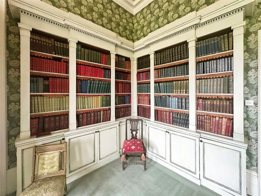 The apartment comprises of the property's principal rooms namely the impressive original library , drawing room and dining room. The property has retained the original features and has been renovated sympathetically and beautifully decorated with William Morris and Sanderson wallpaper. The library is intact with it's Napoleonic fireplace, Tiffany style Dragon Fly Chandelier, opulent swags and tail curtains and original bookcases. There is potential for guest accommodation on the mezzanine floor in the former dining room that is currently used as a study/office.