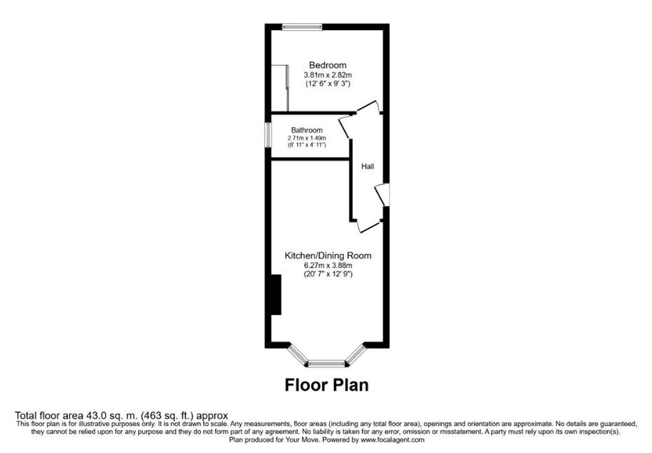 1 Double bedroom, lounge/kitchen, 1 bathroom.