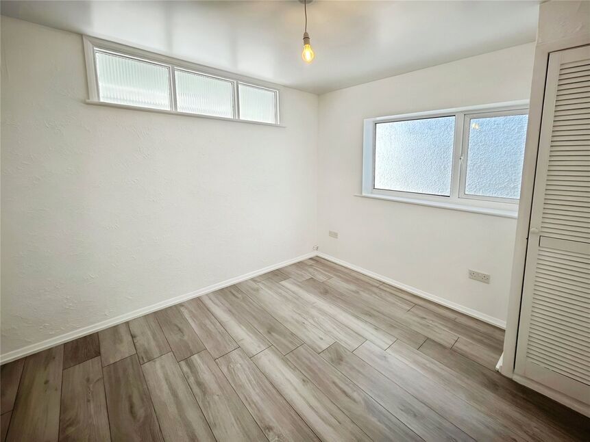 The property boasts a spacious double bedroom, providing ample space for relaxation, with large windows allowing an abundance of natural light to flood the room, creating an airy and uplifting atmosphere.
