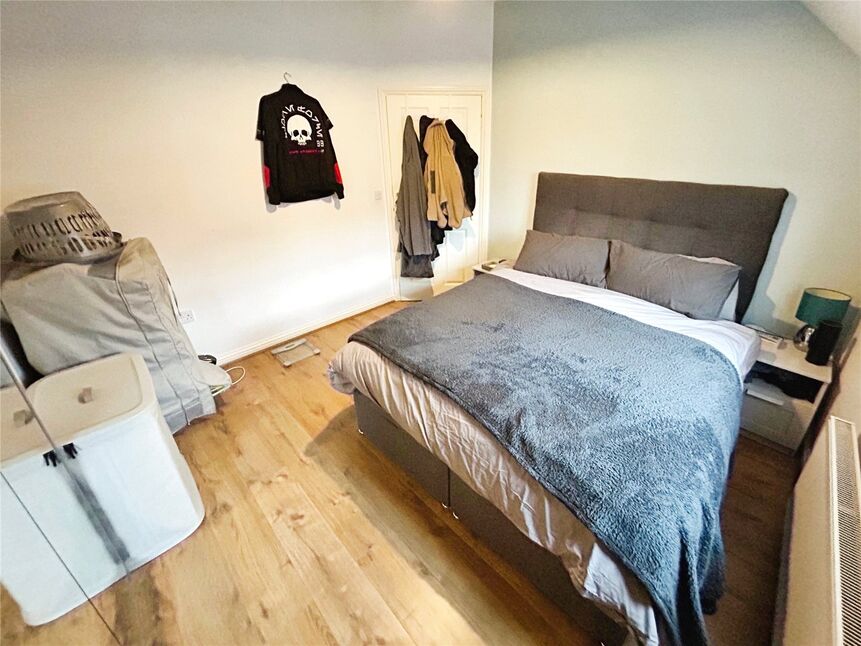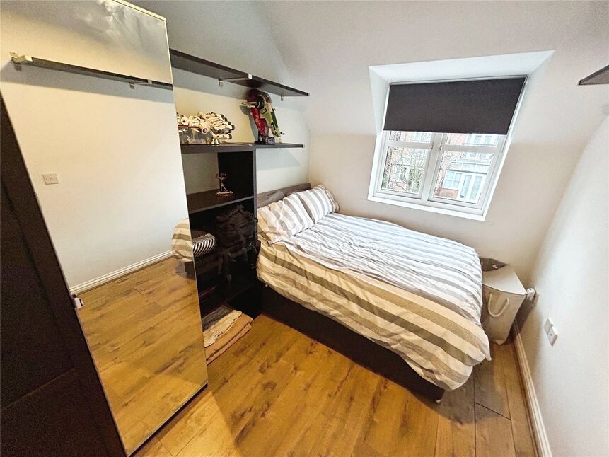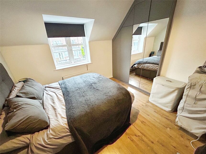With wooden flooring double glazed window to front and fitted wardrobe with storage and part mirrored doors
