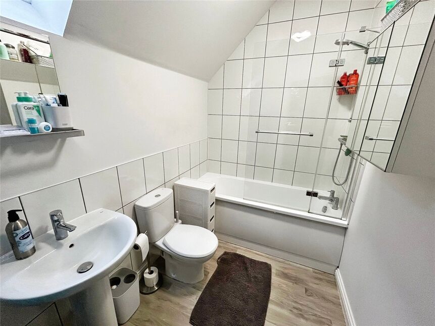 Having been recently refitted to include a white three piece suite with panelled bath with shower over and tiled splashbacks, pedestal wash hand basin and low level wc.