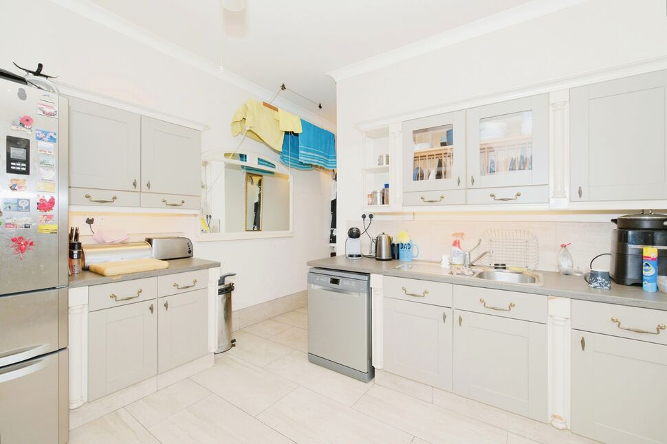 There is also a cellar, and an outdoor courtyard with a garage. The property is well maintained, with central heating, and is an ideal investment or family home. Some fixtures and fittings and bedroom furniture may be negotiable. There are two combi boilers - one serves underfloor heating, the other serves radiators. Residential on street parking permit is available via Cumberland Council. NO ONWARD CHAIN.