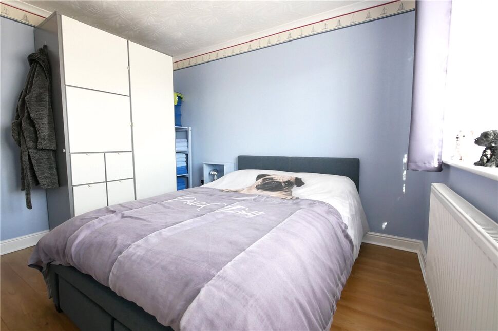 This double bedroom features a double-glazed side window, ceiling light and radiator. Laminate flooring is laid throughout the space.