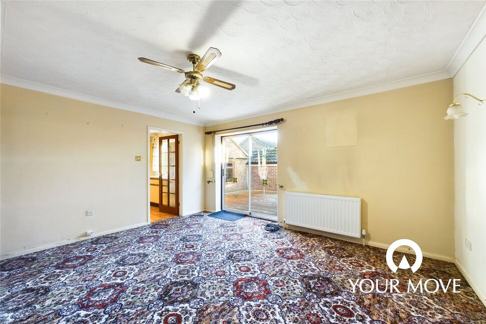 With scope to make your own, the bungalow offers sociable accommodation including a large sitting / dining room with patio doors outside, as well as a kitchen with space for a breakfast table. There is ample storage throughout including a cupboard and large recess to the hallway, as well as fitted wardrobes in each of the homes bedrooms, with a very generous master. The sky-lit shower room includes an airing cupboard, WC, basin and oversized shower enclosure.