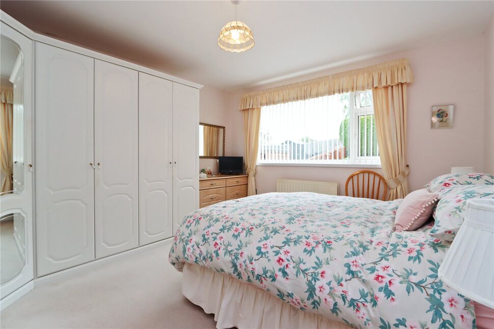The bungalow is situated towards the end of the row, adjacent to the small electricity sub-station on the corner of the The Meadows.