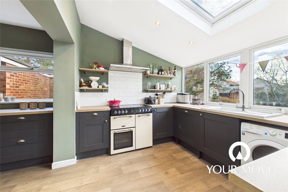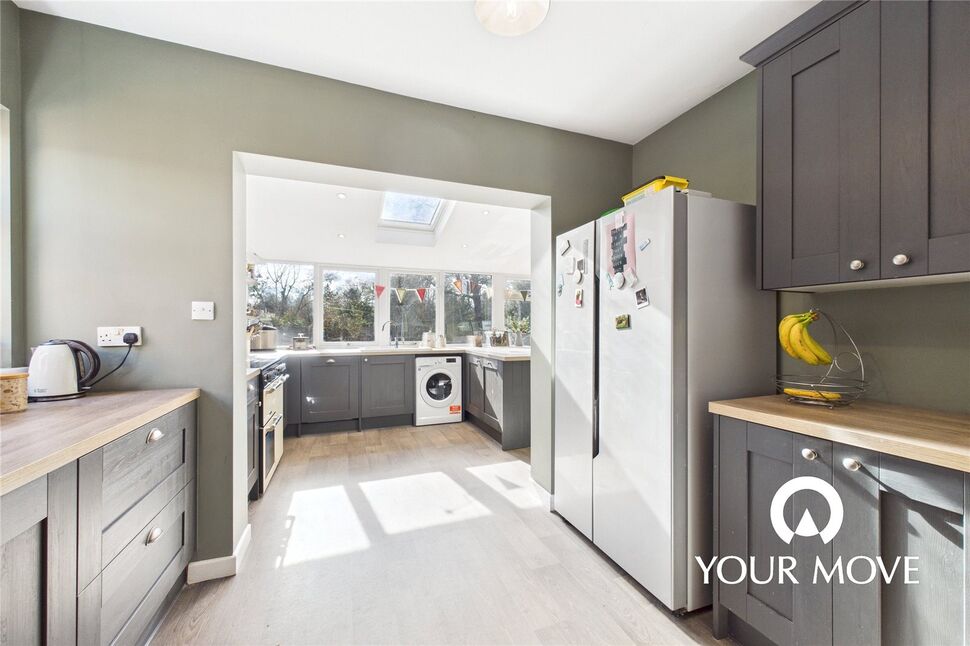 Entering via a sizeable porch and inner hall there is ample space for coats and shoes as well as an essential cloakroom / WC for guests and family living. With the advantage of a separate, traditional dining room, you can enjoy cosy nights by the inset log burner in the generous sitting room which boasts light from two aspects including sliding doors to the family room. Incorporating the home’s original kitchen, an almost full-width rear extension provides an open plan family hub, flooded with natural light from wall width windows and three Velux’s. Whether it’s drinks at the breakfast bar, board games at the dining table or relaxing by the garden’s patio doors, there’s something for everyone, with an integrated dishwasher and space for multiple appliances in the generously equipped kitchen area.