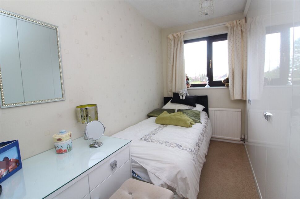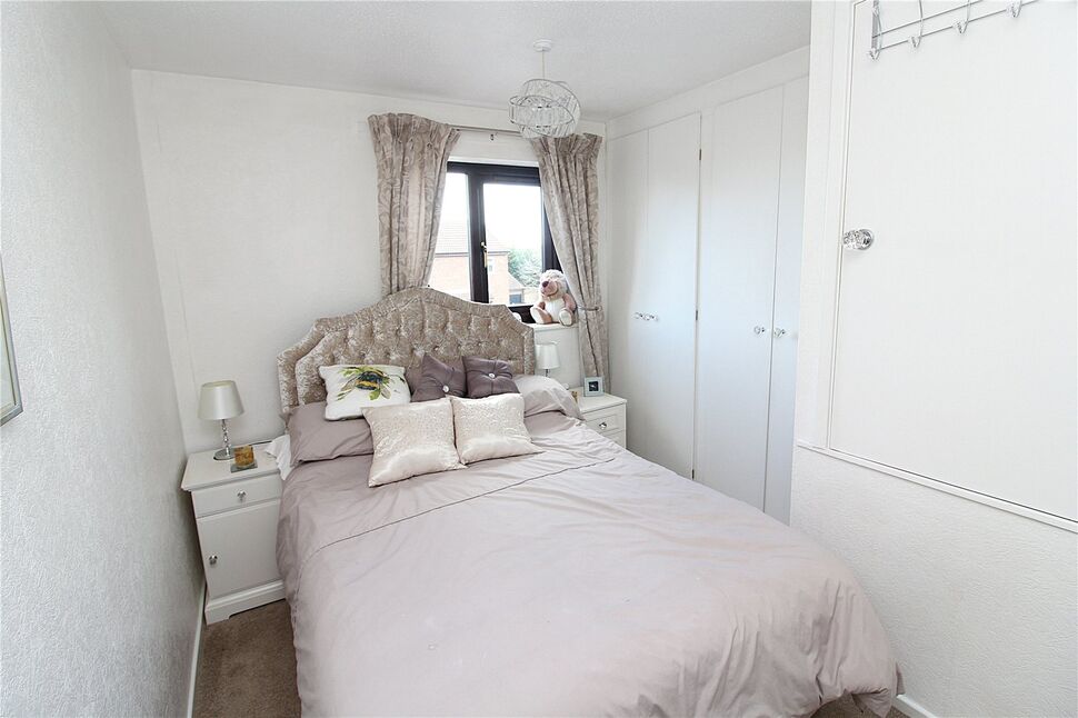 Fitted wardrobes to one wall, radiator, double glazed window to the rear.