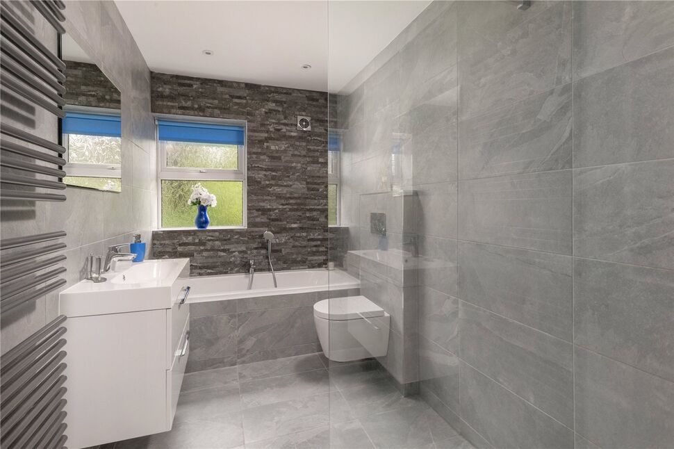 To the first floor, there are three well-proportioned bedrooms, two of which are generous doubles. The principal bedroom benefits from a modern en-suite shower room. A beautifully presented, fully tiled family bathroom serves the remaining bedrooms and is fitted with a contemporary four-piece suite, including a walk-in shower cubicle, bath, wash basin, and WC.