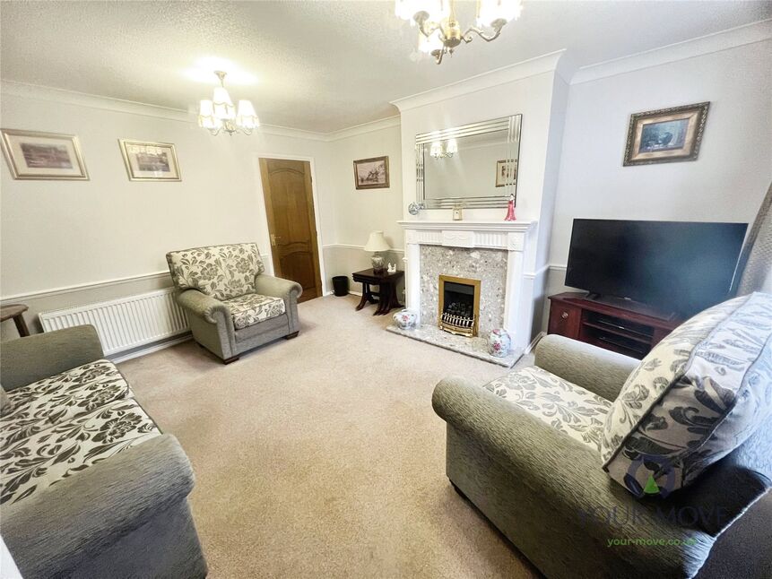 Double glazed window to front, radiator, gas fire set within feature fireplace, coving, door into: