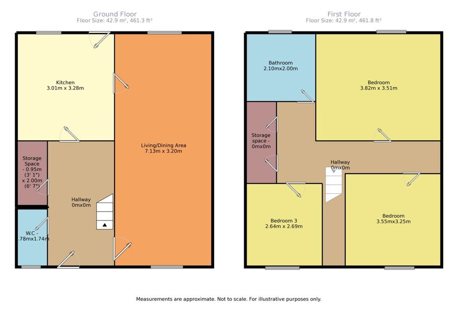 The property features an open and spacious living and dining room room downstairs as well as a good sized kitchen and a W.C. There is plenty of storage available throughout the house both upstairs and down. Ascending to the first floor you are greeted with the three double bedrooms as well as the family bathroom.