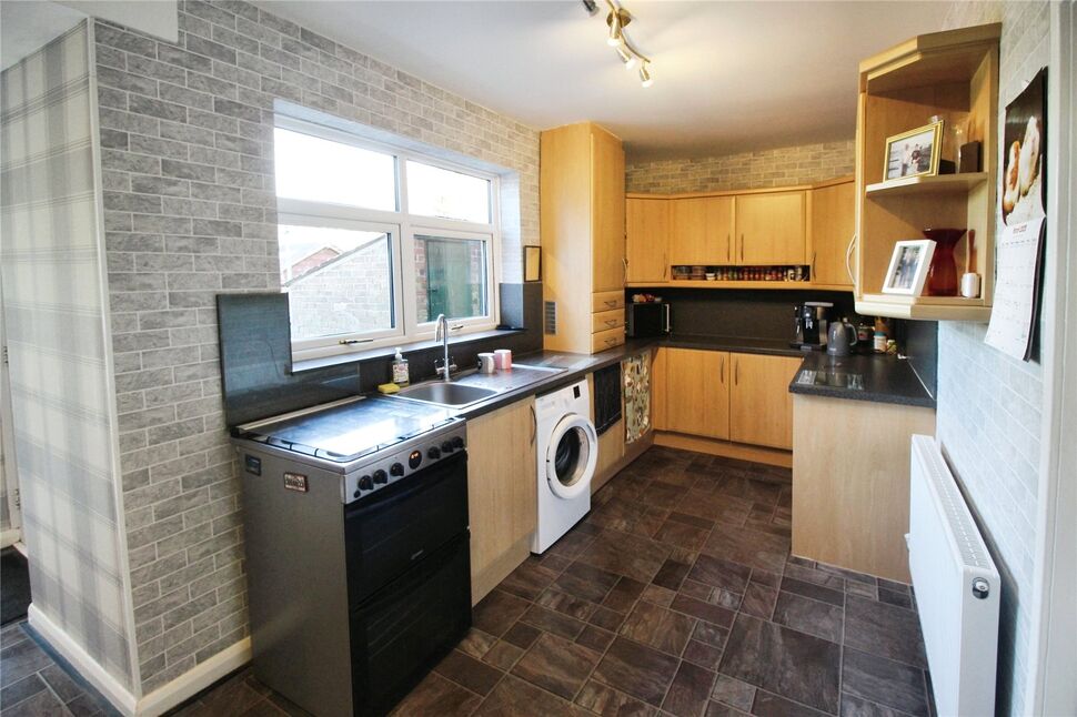 Fitted with a range of wall and base unit with roll edge work surfaces with matching upstands. There is an integrated sink with drainer and mixer tap over and fridge and freezer. The boiler is located in a cupboard in the kitchen and there is space for a free standing gas cooker and washing machine. There is a window to the rear overlooking the lovely rear garden, open plan into the dining area with door to the side.