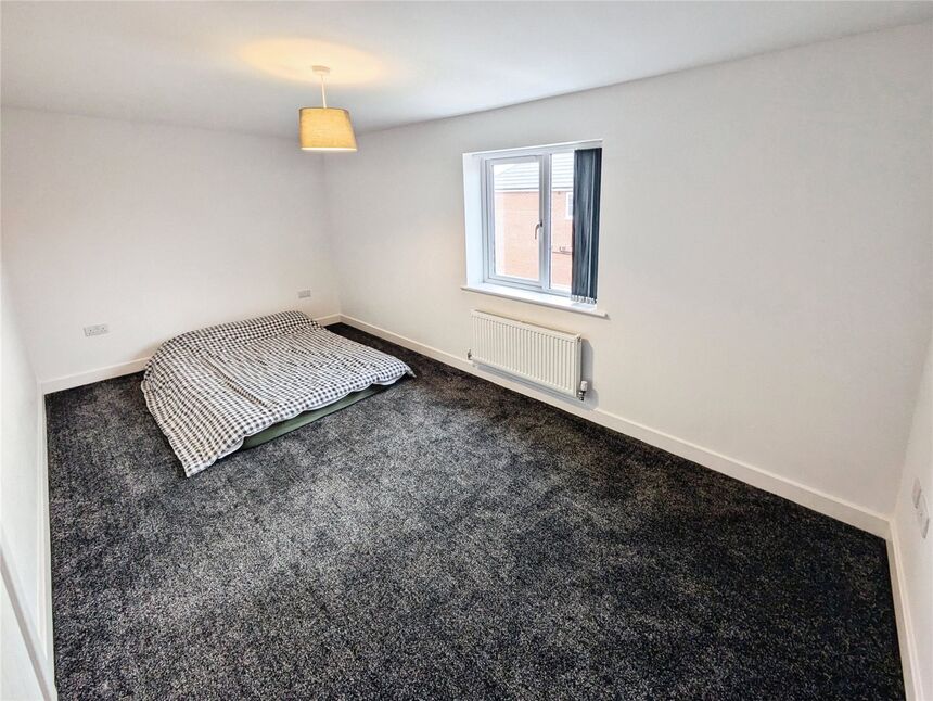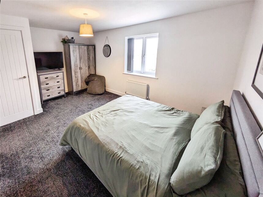 Double bedroom with carpet flooring, radiator and a double glazed window to the rear aspect.