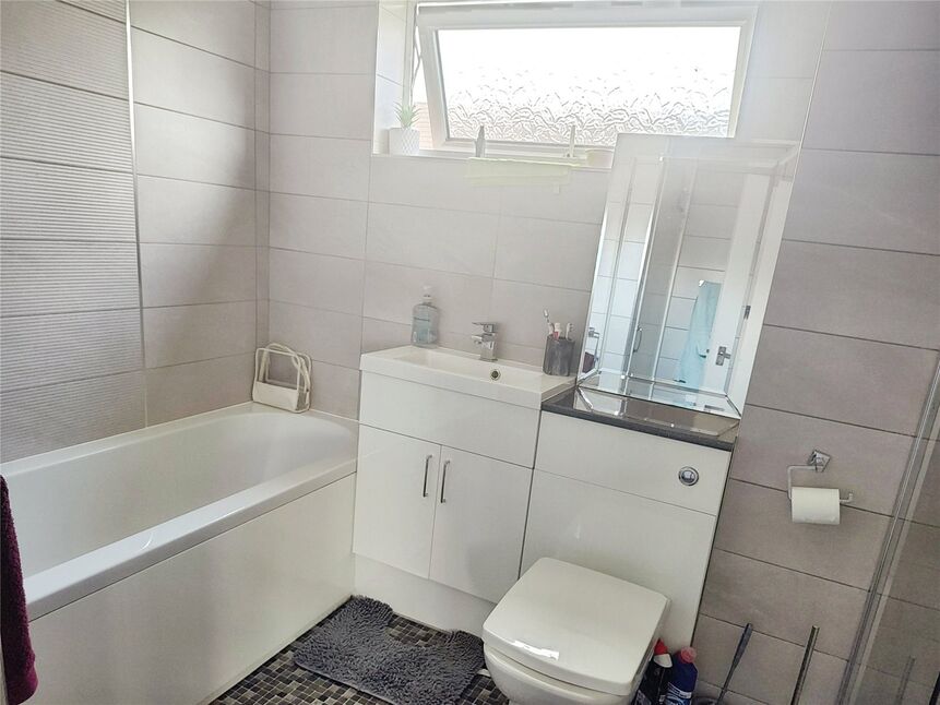 Panel bath, separate shower cubicle, low level w/c, wash hand basin.