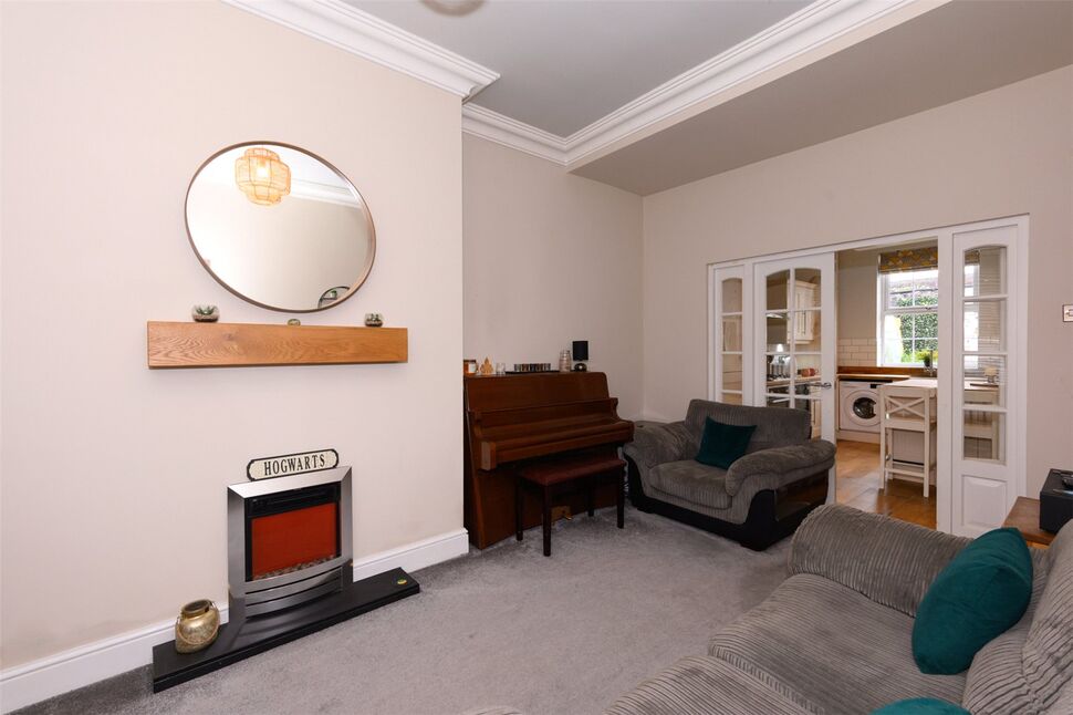Positioned at the front of the property, with electric fire, understairs cupboard and coving. Internal French doors open into kitchen/diner.