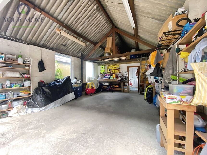 Outside, the property benefits from a large double garage, providing secure parking or additional storage space.