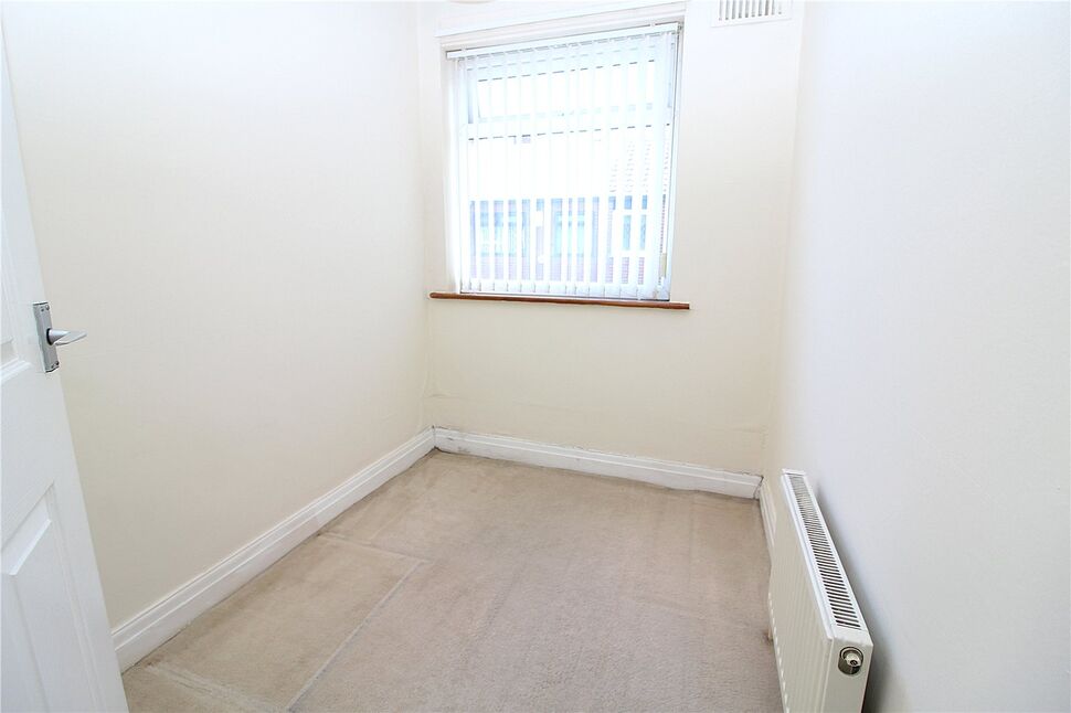 Range of fitted units, integrated oven and hob, integrated fridge, inset sink unit, washer plumbing, radiator, double glazed window to the rear, rear entrance door, useful large storage cupboard.