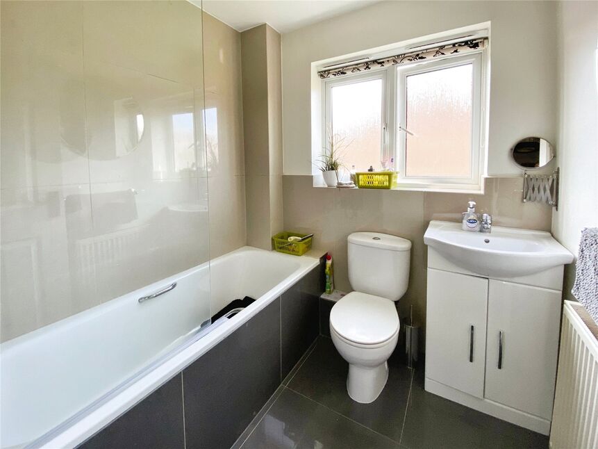 The family bathroom is well-appointed with a heated towel rail and other modern fixtures, adding to the overall comfort and convenience of this delightful property.