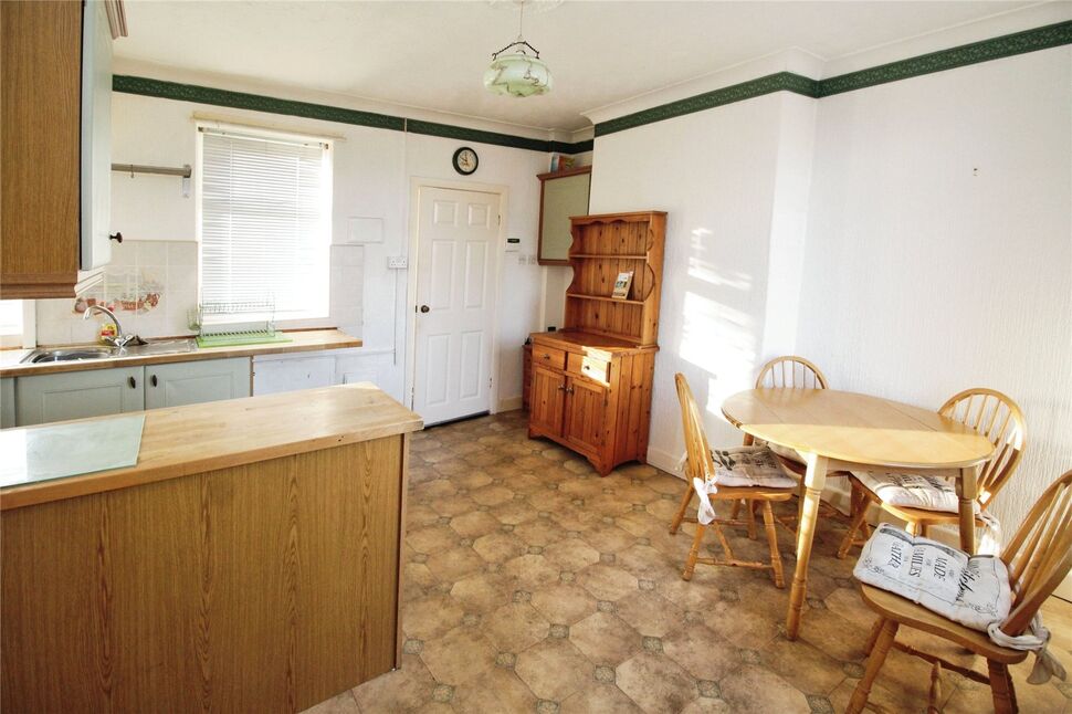 Having front & rear facing double glazed windows, range of wall & base units work top surfaces inset stainless steel sink & drainer and mixer taps. Gas cooker point, coving to ceiling, part tiling to walls, plumbing & recess for washing machine and a central heating radiator.