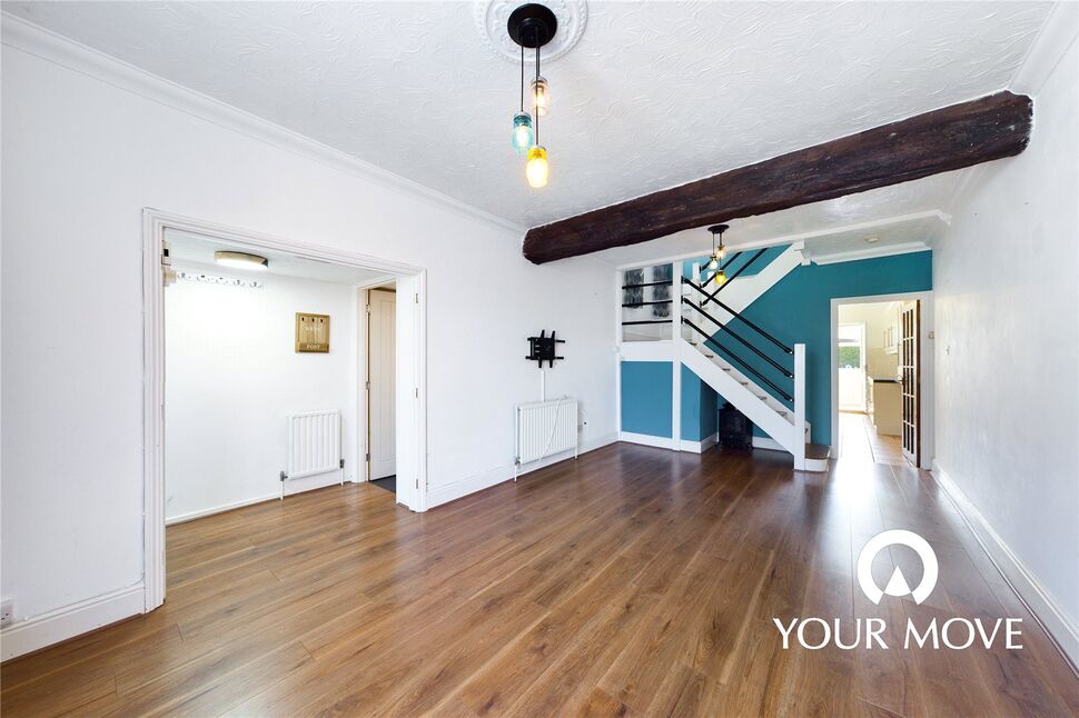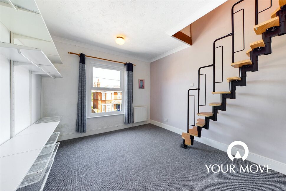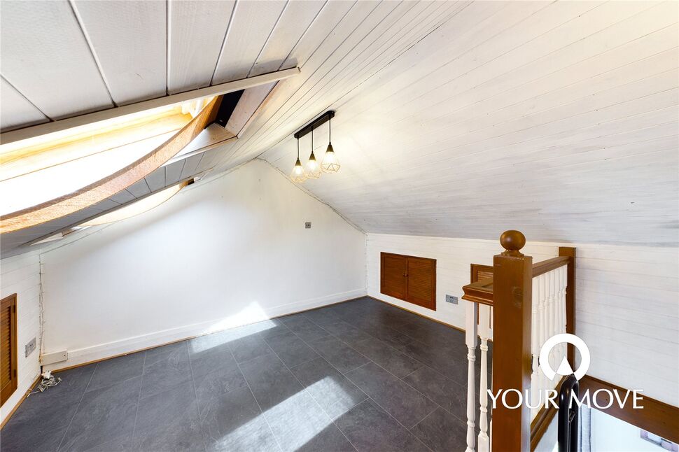 Sold chain free, the home is entered via a ground floor porch, before leading into the very generous sitting / dining room; complete with high ceilings, exposed timber and easy-maintenance laminate flooring. The kitchen offers space for table and chairs as well as a deceptive amount of storage and work surface space; with plumbing for a washing machine found in the rear porch. There is also a ground floor WC for guests and family life. Upstairs you can find two large double bedrooms, along with the family shower room, with an double length walk-in shower. Paddleboard-style steps lead up from bedroom two to the loft space, complete with a Velux window and eaves storage.