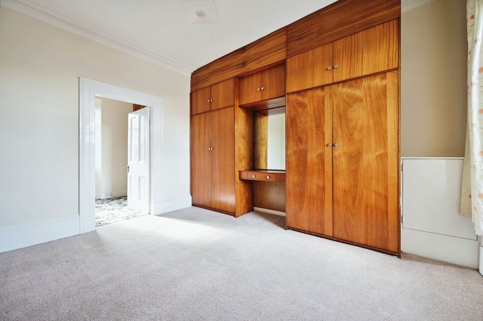 A third, smaller, double bedroom offering ample space and a built-in cupboard for practical storage.