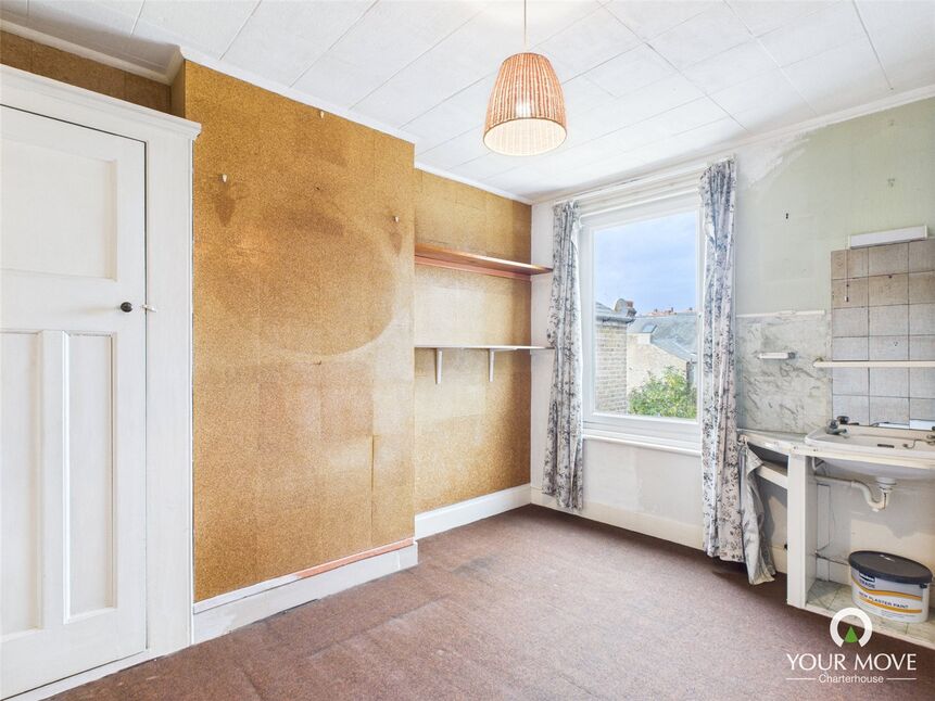 With 2 double glazed windows to the front, original floor boards, electric wall heater, coving.