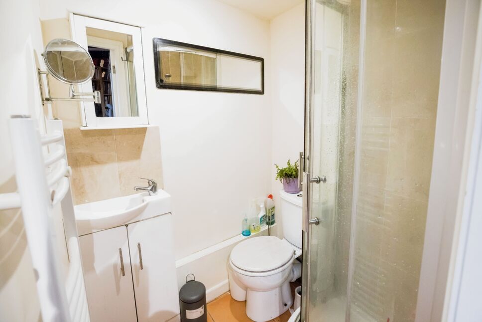Comprising WC, wash basin, shower cubicle, radiator, extractor.