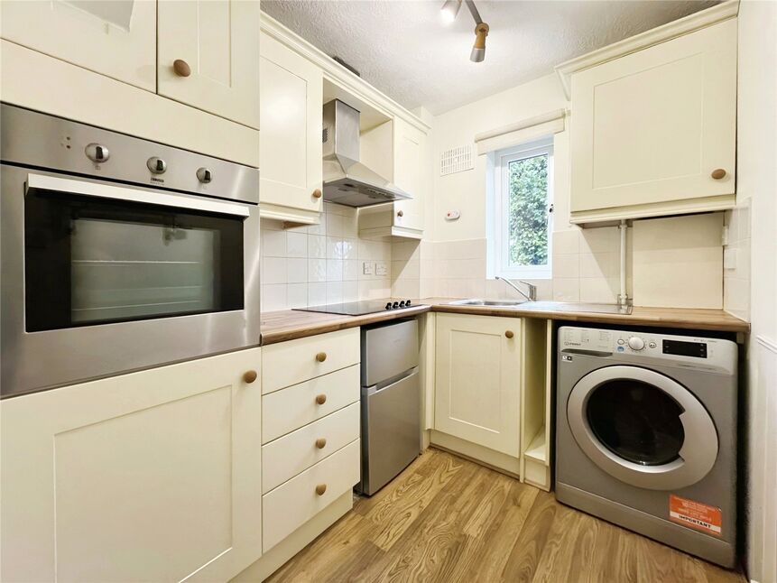 Double glazed window to rear, offered with a modern range of matching wall and base units, sink unit and side drainer, electric hob, extractor above and fitted oven. Fridge and Washing machine to remain deep storage cupboard.