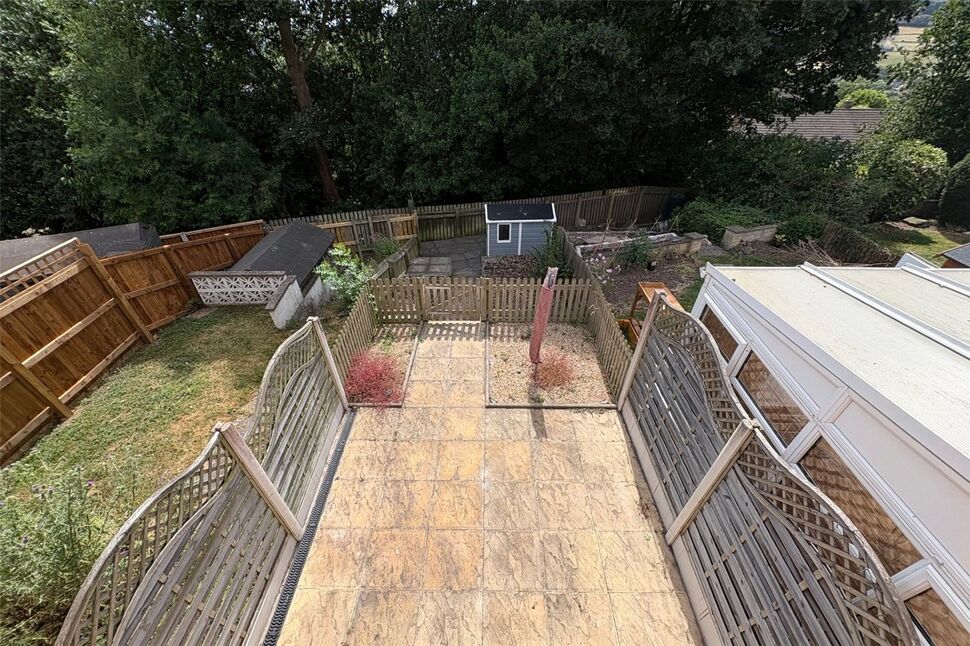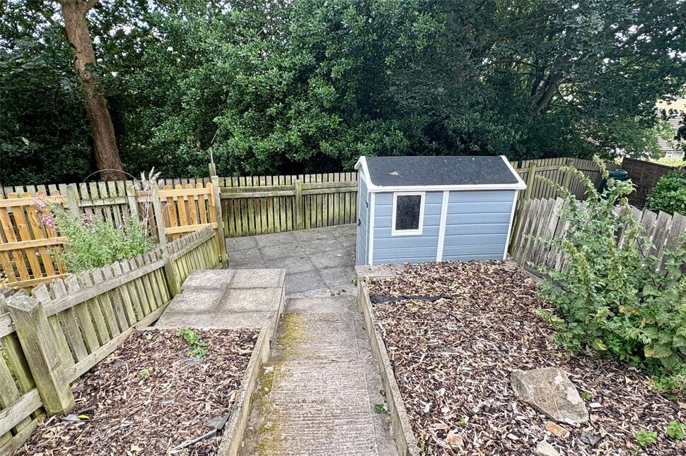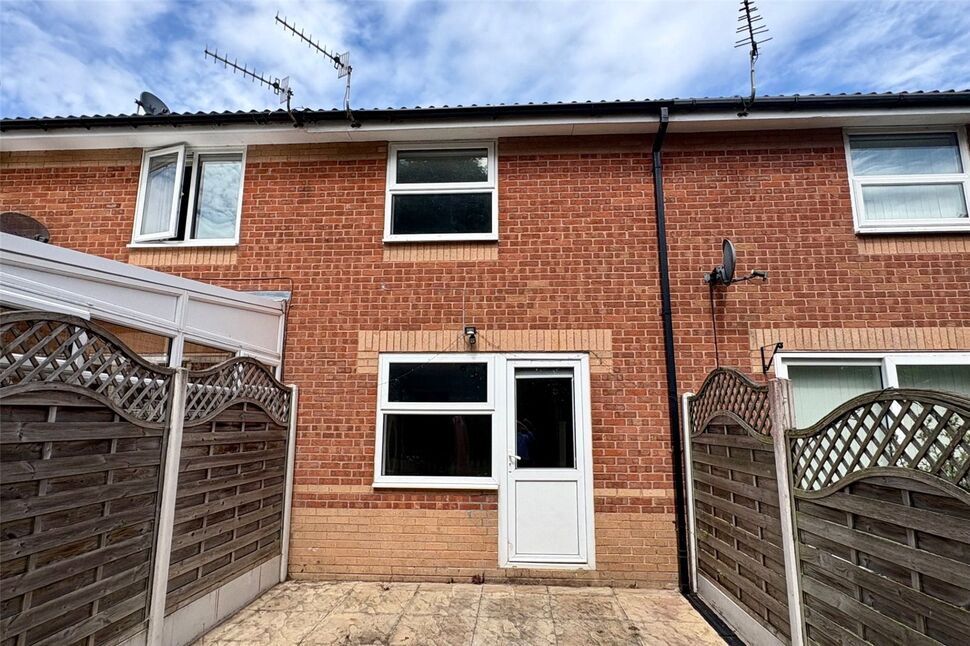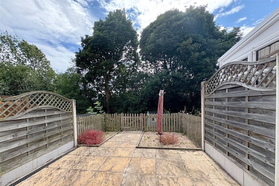 To the front of the property is a small lawn area and access pathway to the storm porch and front entrance door with the allocated parking spaces located to the end of row, nearby. The rear garden comprises a block-paved patio with a steps down through a lawn area with timber sleepers, borders and gated rear access.