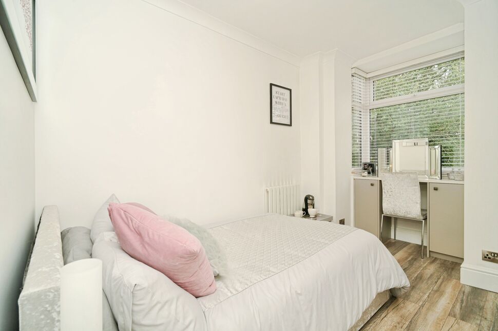 Versatile space, convenient for bedroom/home office. Fitted dressing table/storage. Laminate flooring, central heating radiator. uPVC double glazed bay window to rear aspect.