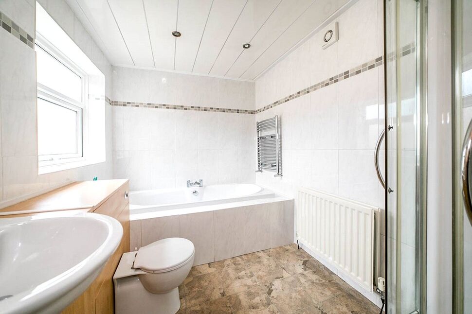 The spacious bathroom boasts a bath, W/C and wash hand basin with a separate quadrant shower.