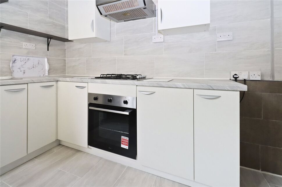 The modern kitchen is fully equipped with integrated oven and hob with extractor over and plenty of storage space.