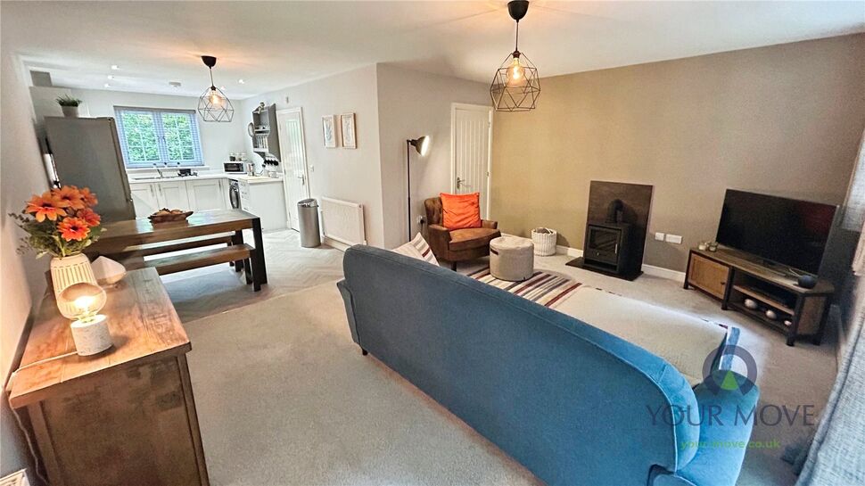 The open-plan lounge flows seamlessly from the kitchen/diner, creating a bright and spacious living area ideal for modern lifestyles. Featuring a Biofuel burner and French doors with direct access to the garden, its the perfect space for living and entertaining.