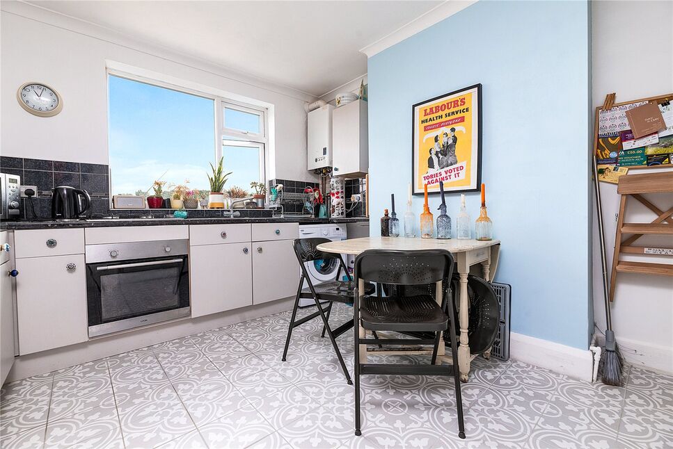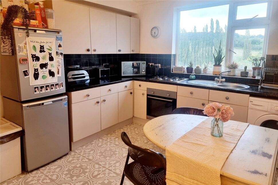 Benefitting from a range of fitted wall/base and drawer units with contrasting work surfaces and inset sink and drainer. Other features include an integrated gas hob and electric oven, space and connections for a fridge freezer, plumbing for a washing machine, tile effect flooring, tiled splashbacks, radiator, gas central heating boiler and a double glazed window to the rear aspect offering fabulous views.