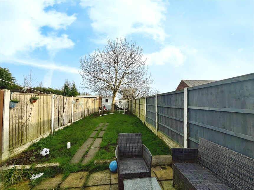 The enclosed rear garden is predominately laid to lawn with a paved patio & fence surround.