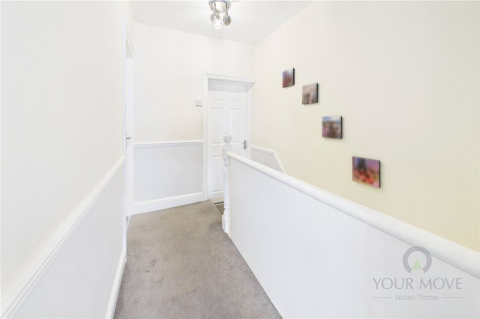 Off this hallway, you'll also find the modern ground-floor bathroom, complete with a white suite, shower over bath, quality tiling and a chrome-heated towel rail.