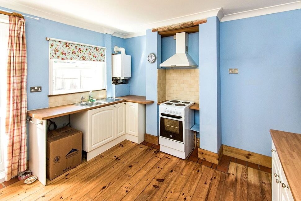 Being fitted with a range of eye level wall and base units with contrasting work surfaces fitted over, space for cooker, fitted extractor hood, stainless steel sink with drainer, space for fridge freezer, space and plumbing for washing machine, double glazed window to rear aspect, rear door, understairs storage cupboard, radiator.