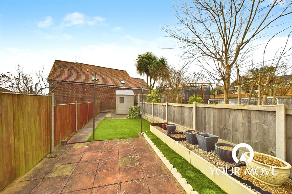 Outside, the home offers a low-maintenance plot, with the lengthy rear garden featuring ample patio space, astro-turfing and shed; enviably facing south to enjoy the sunshine throughout the day.