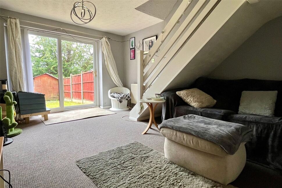 Light and spacious reception room featuring two central heating radiators, TV point, staircase to the first floor and double glazed sliding doors opening to the rear garden.