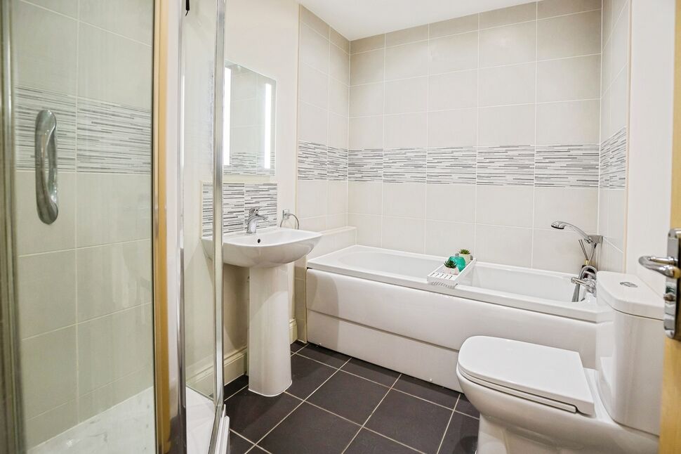Comprising WC, wash basin, bath, shower cubicle, extractor, radiator.