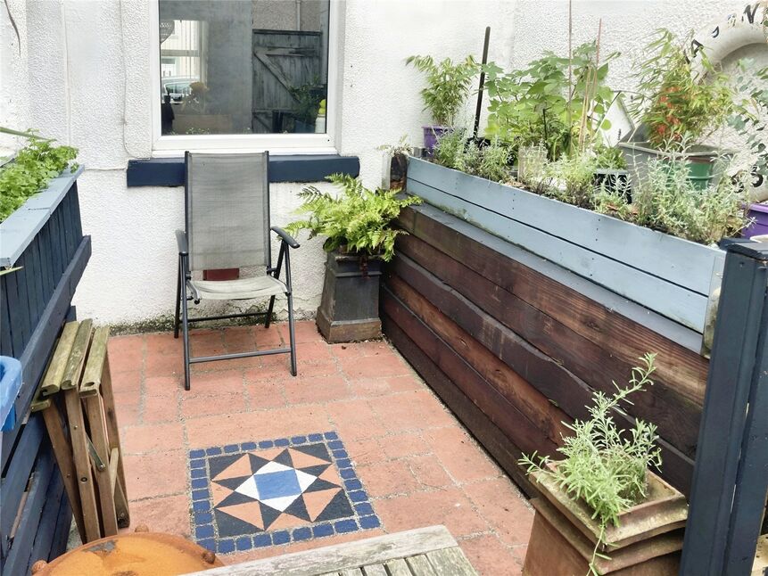 Outside to the rear is a lovely enclosed yard with raised beds and painted floor, making it feel like another room outside. To the front is an enclosed forecourt area with ample space for a seating area.