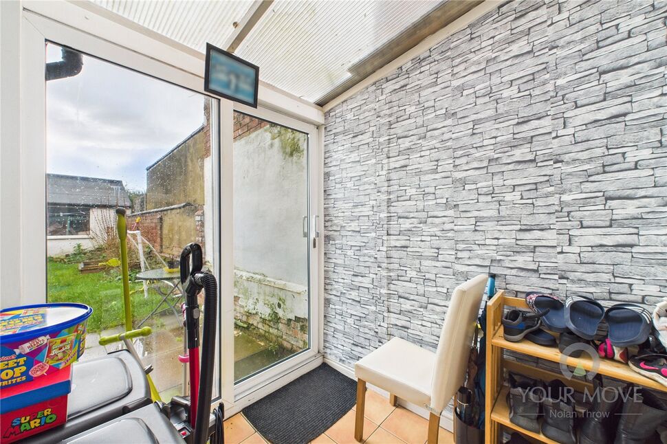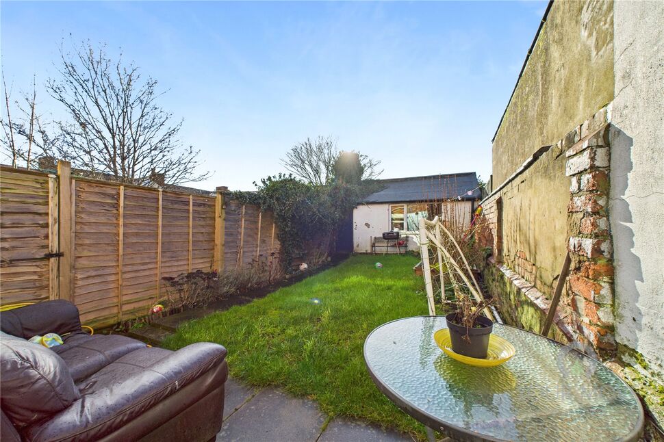 A door from the kitchen leads to a small sunroom, an ideal spot for enjoying a morning coffee or as a flexible space for a playroom or home office. Patio doors open out to the fully enclosed rear garden, seamlessly connecting indoor and outdoor living.