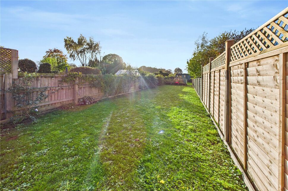 Accessed across a shared right of way, enclosed by fencing, manly laid to lawn, paved patio area, flower and shrubbery borders, outside tap, wooden summerhouse at the end of the garden with a timber decked area in front.