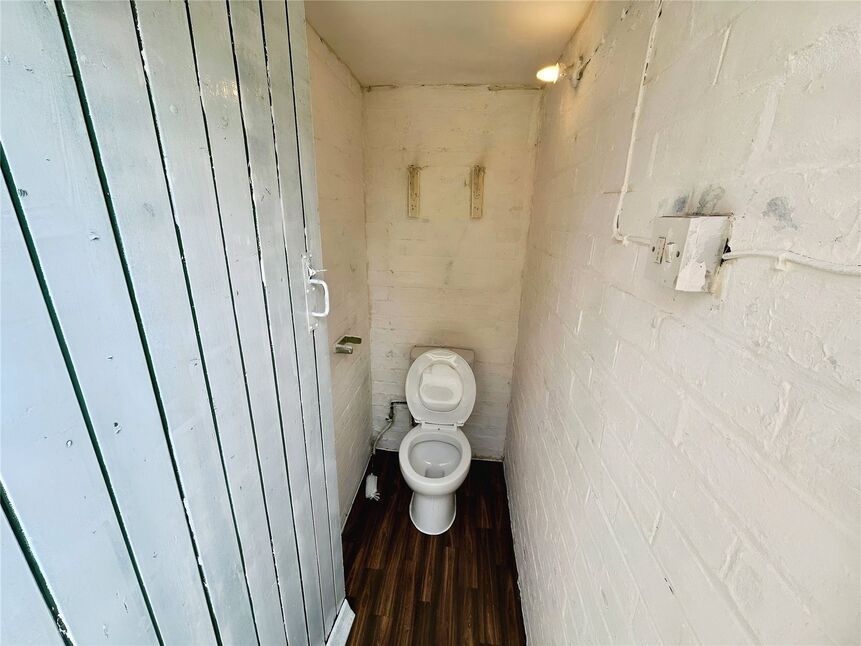 Large rear garden with recently jet washed patio area with a large lawned area beyond.Property benefits from a fitted outside tap and working WC with vinyl flooring.