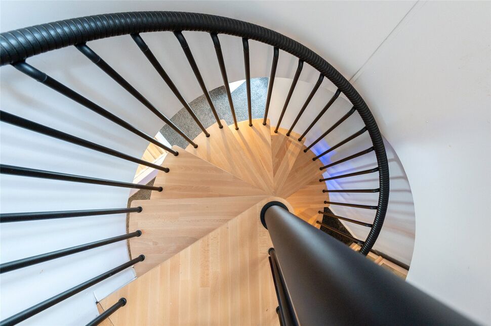 A generous size open plan lounge/kitchen features three arched church windows. Within the kitchen area there are base, display and wall units with complementing work surfaces. Further benefits include a slot in stove with five burner gas hob and a central island with refrigerator and freezer. This area is also ideal for seating. A feature circular staircase leads down to the basement bedroom and en suite.